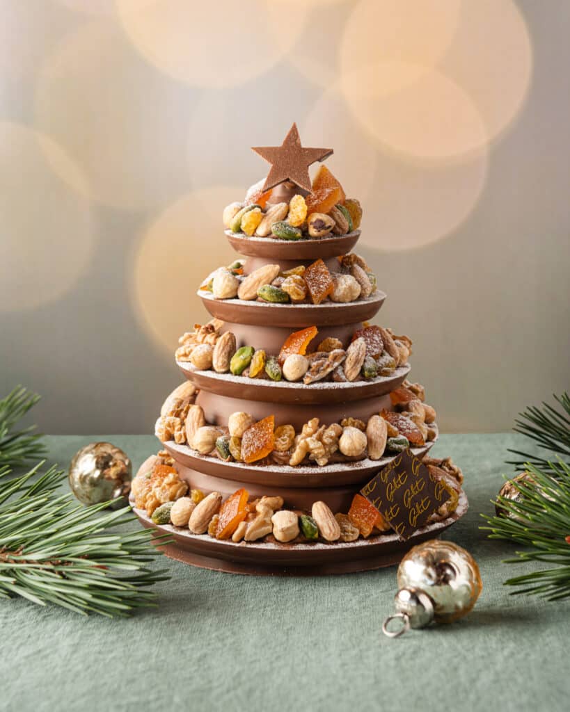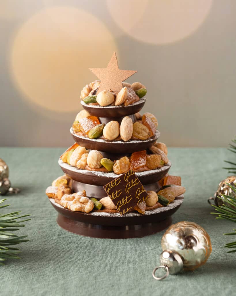La Maison Guillet redéfinit les classiques avec ses sapins aux mendiants et ses sapins Vercors. Ces créations audacieuses marient le croquant des fruits secs aux saveurs onctueuses du chocolat. Guillet et chocolaterie de Noël pour vous faire voyager en enfance !