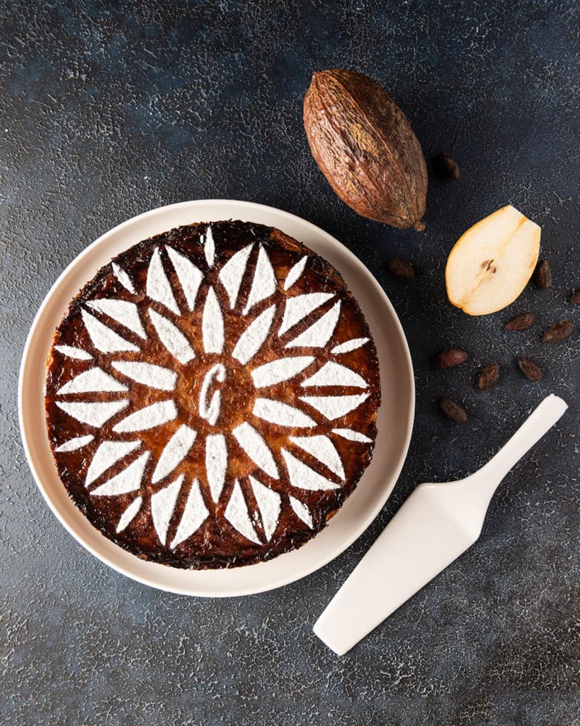 Laissez-vous tenter par La Belle-Hélène, cette galette aux exquises associations pour commencer l’année sur une note gourmande dont vous vous souviendrez longtemps ! Avec son feuilletage caramélisé, vous découvrirez une rosace de fines lamelles de poires Williams pochées sur un lit de frangipane chocolat Guanaja.